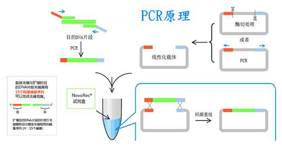 PCR( Polymerase Chain Reaction)-聚合酶鏈?zhǔn)椒磻?yīng),可以選擇性擴(kuò)增一段DNA序列。其基本步驟是,首先將待擴(kuò)增的模板DNA變性使之成為單鏈,DNA樣品中,特異性的引物能夠與其互補(bǔ)的序列雜交,在dNTPs和Taq酶存在時(shí),就可以合成模板DNA的互補(bǔ)鏈,反應(yīng)完成后,將反應(yīng)混合物加熱使DNA雙鏈變性,溫度下降后,過量的引物又可以開始第二輪的合成反應(yīng)。這種延伸-變性-退火-延伸的循環(huán)可以重復(fù)多次,使所需要的DNA片段得到特異性的擴(kuò)增。PCR反應(yīng)在生物體外大量擴(kuò)增特定DNA片段的分子生物學(xué)技術(shù),其特點(diǎn)是可以以微量的DNA為模板,快速擴(kuò)增得到大量拷貝。