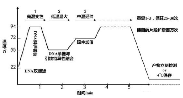 1. 高溫變性:所謂變性是95℃左右時(shí)DNA雙鏈打開的過程,使之能夠與引物結(jié)合,為下面的反應(yīng)做準(zhǔn)備。但是注意考點(diǎn):這里的DNA不只是我們加進(jìn)去的模板DNA,還包括擴(kuò)增出來的DNA,體系里但凡是雙鏈,高溫都能給他打開了。